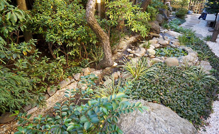 お庭の中には、樹木があり、草花があり、石や土があります。