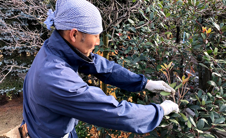緑が豊かになり、全ての人々が心穏やかになっていただきたいという気持ちを胸に、職人の技巧と礼節を持って、会社として、また個人としても努力を惜しまないことをお誓い申し上げます。